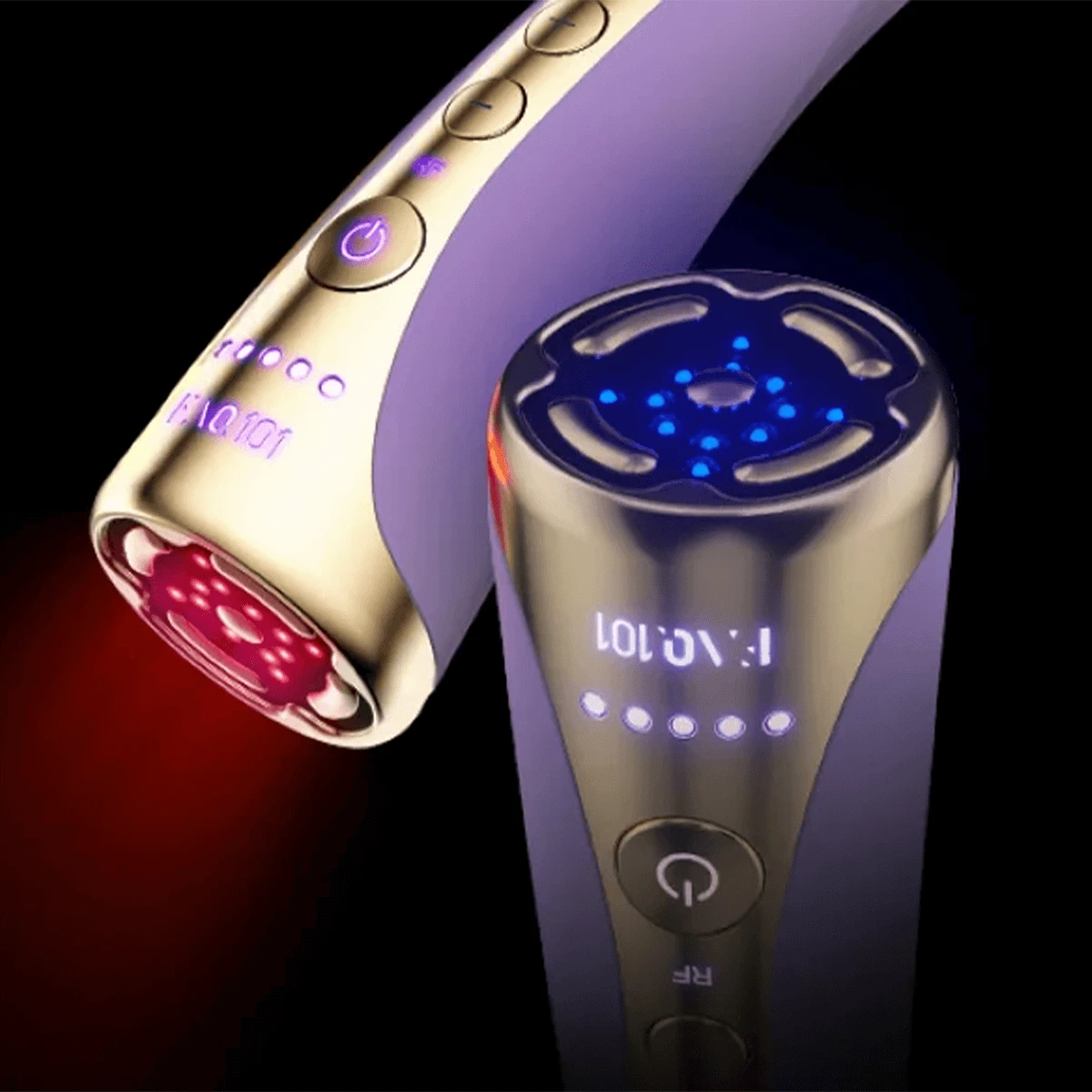 Step 3: Press the RF and LED buttons to alternate treatments.